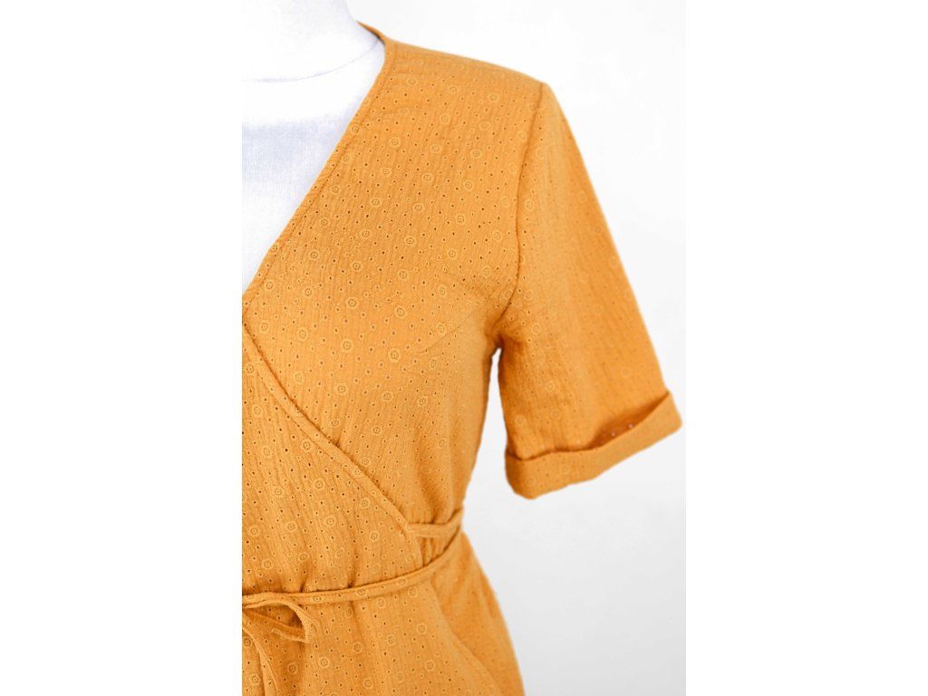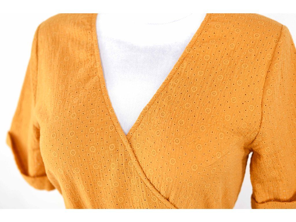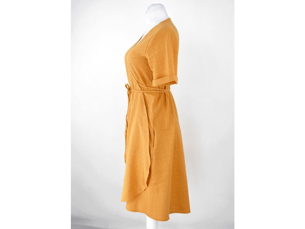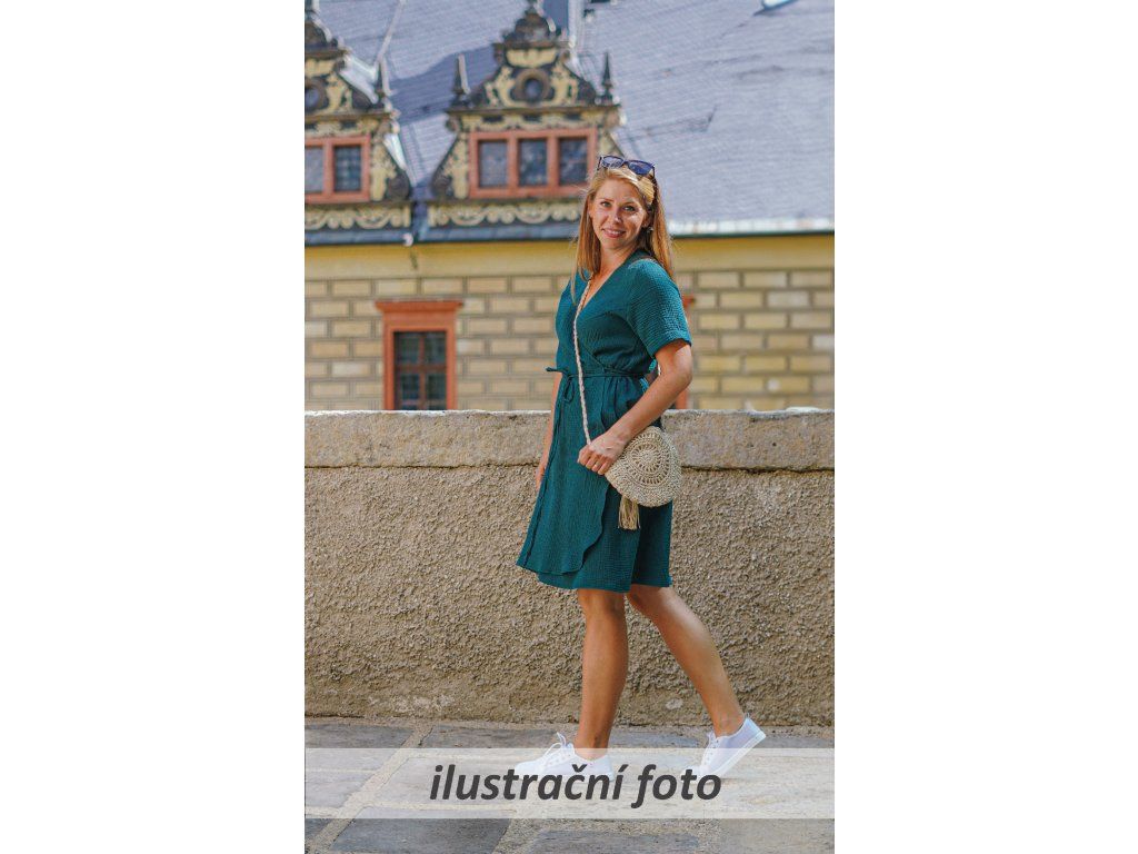 Dámské zavinovací šaty z mušelínu. Jsou ušity z několika metrů látky, kterou si páskem zavinete kolem těla (na pravém boku je otvor, kterým protáhnete pásek). Mají véčkový výstřih - tak akorát hluboký, zdůrazní pas a přes boky jsou volné. Mají skryté kapsy v bocích... :)