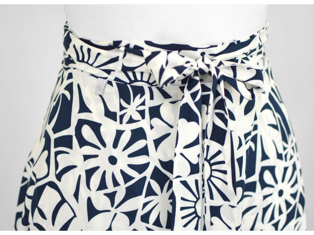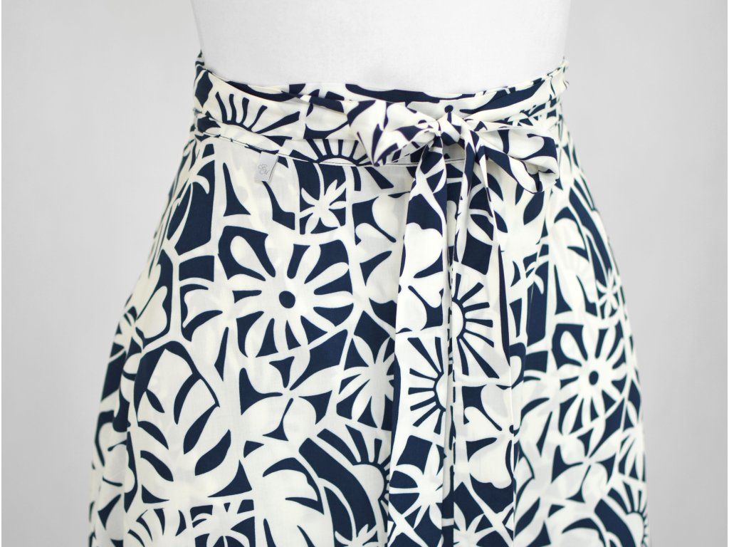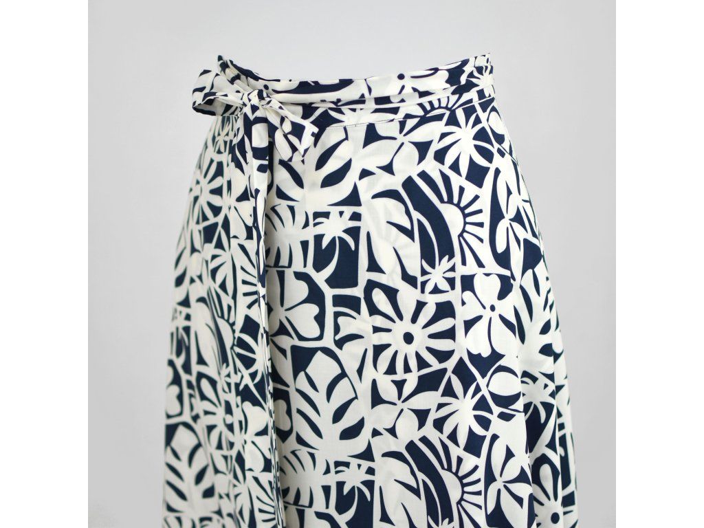 Zavinovací sukně je ušita z několika metrů látky, kterou si páskem zavinete kolem těla (na pravém boku je otvor, kterým protáhnete pásek). Vzadu je delší a vepředu kratší a asymetrická. Samotný střih sukně vychází z půlkolového tvaru. V bocích má skryté kapsy - ty jsou dobrým ukazatelem, že máte sukni správně posazenou.