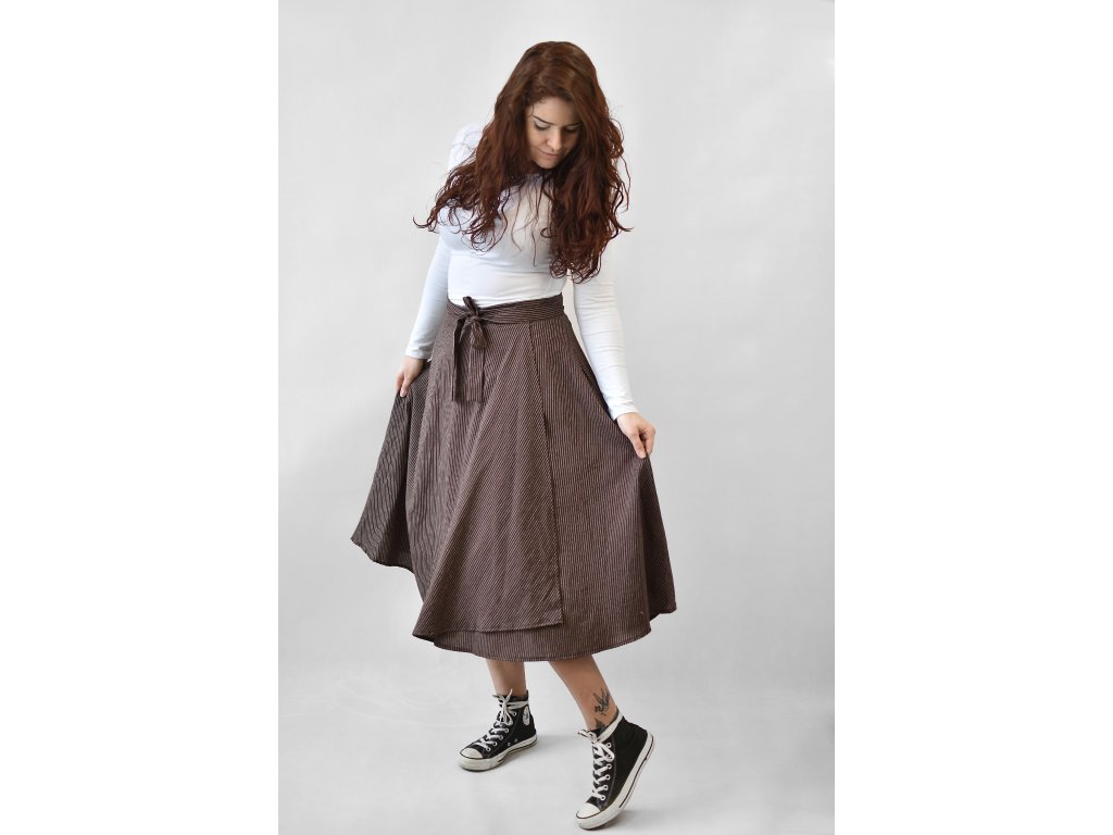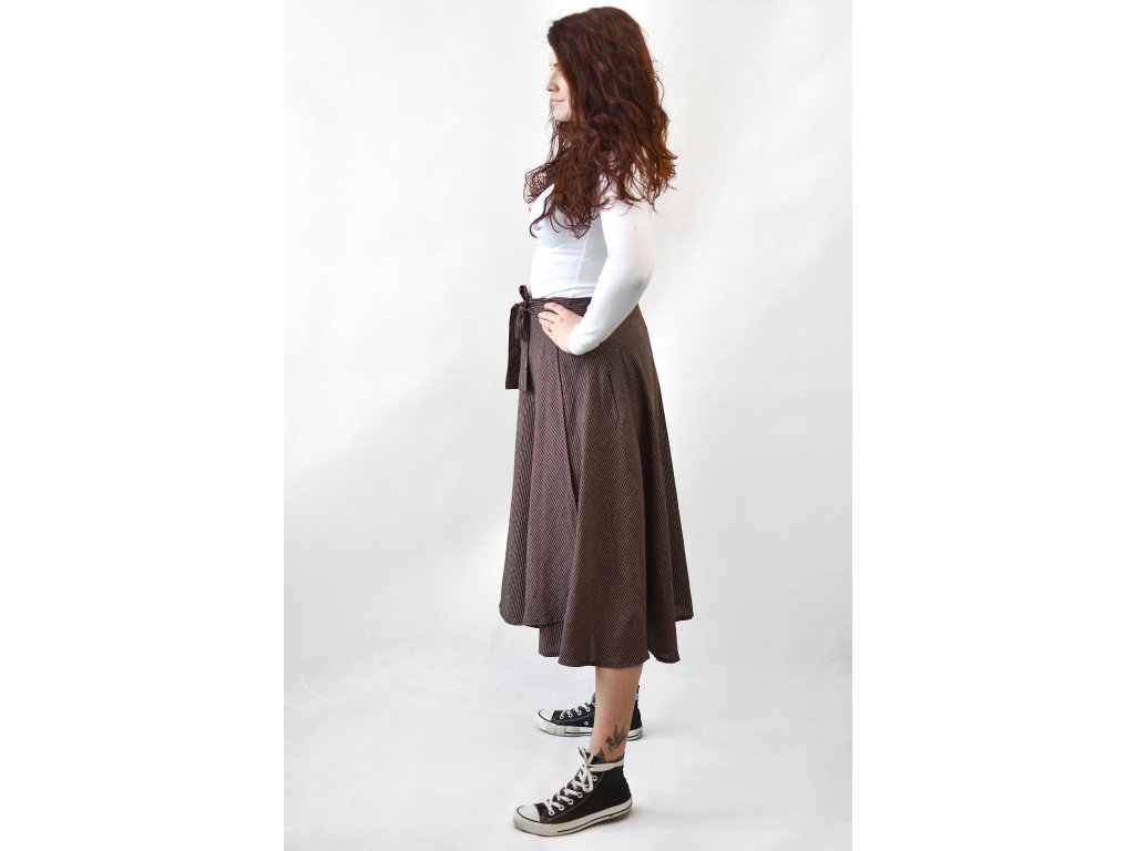 Zavinovací sukně - hnědá s proužky