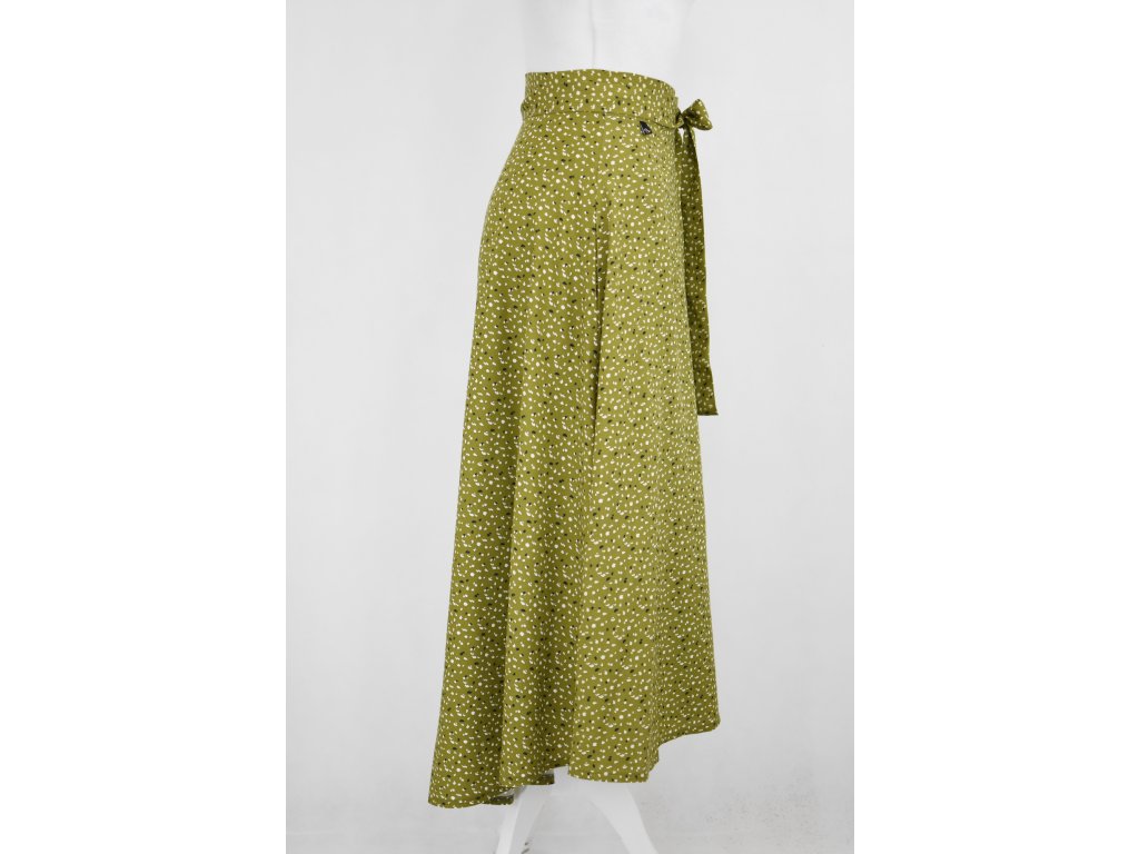 Zavinovací sukně je ušita z několika metrů látky, kterou si páskem zavinete kolem těla (na pravém boku je otvor, kterým protáhnete pásek). Vzadu je delší a vepředu kratší a asymetrická. V bocích má skryté kapsy - ty jsou dobrým ukazatelem, že máte sukni správně posazenou... : )