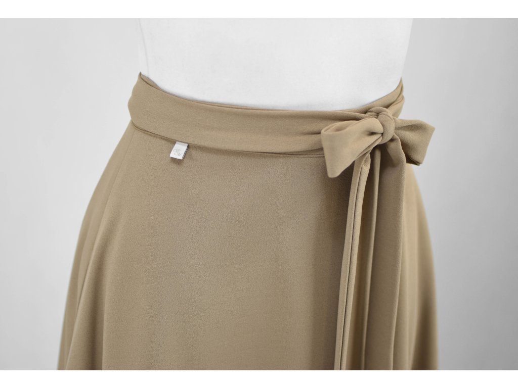 Zavinovací sukně je ušita z několika metrů látky, kterou si páskem zavinete kolem těla (na pravém boku je otvor, kterým protáhnete pásek). Vzadu je delší a vepředu kratší a asymetrická. V bocích má skryté kapsy - ty jsou dobrým ukazatelem, že máte sukni správně posazenou... : )