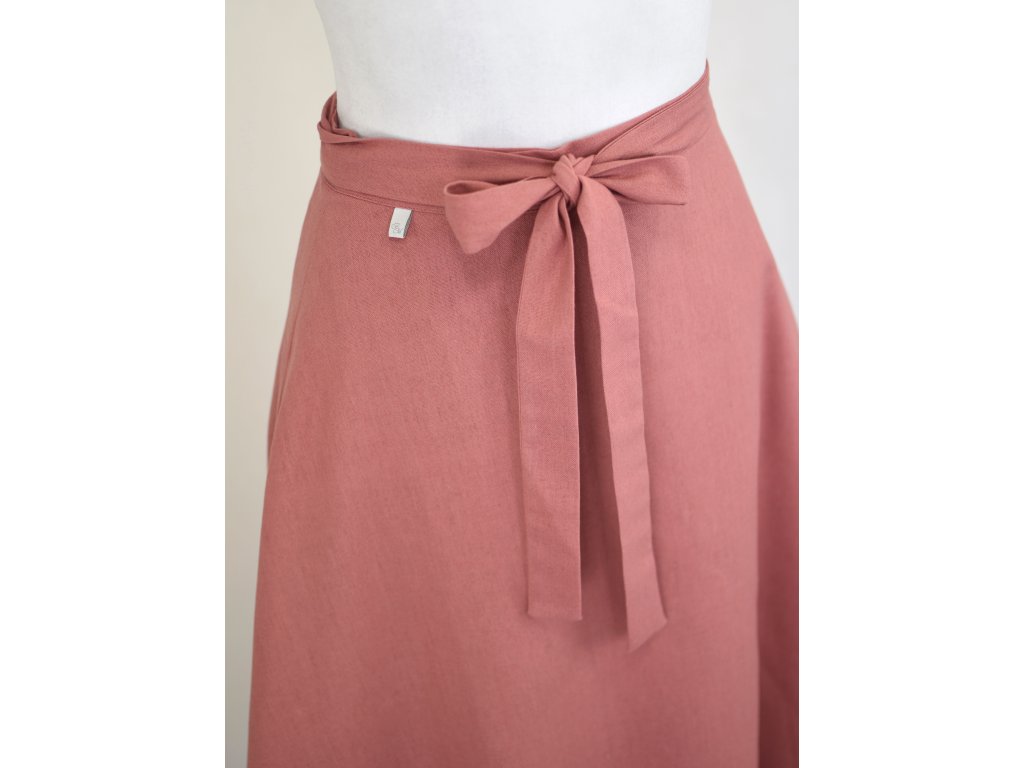 Zavinovací sukně je ušita z několika metrů látky, kterou si páskem zavinete kolem těla (na pravém boku je otvor, kterým protáhnete pásek). Vzadu je delší a vepředu kratší a asymetrická. V bocích má skryté kapsy - ty jsou dobrým ukazatelem, že máte sukni správně posazenou... : )