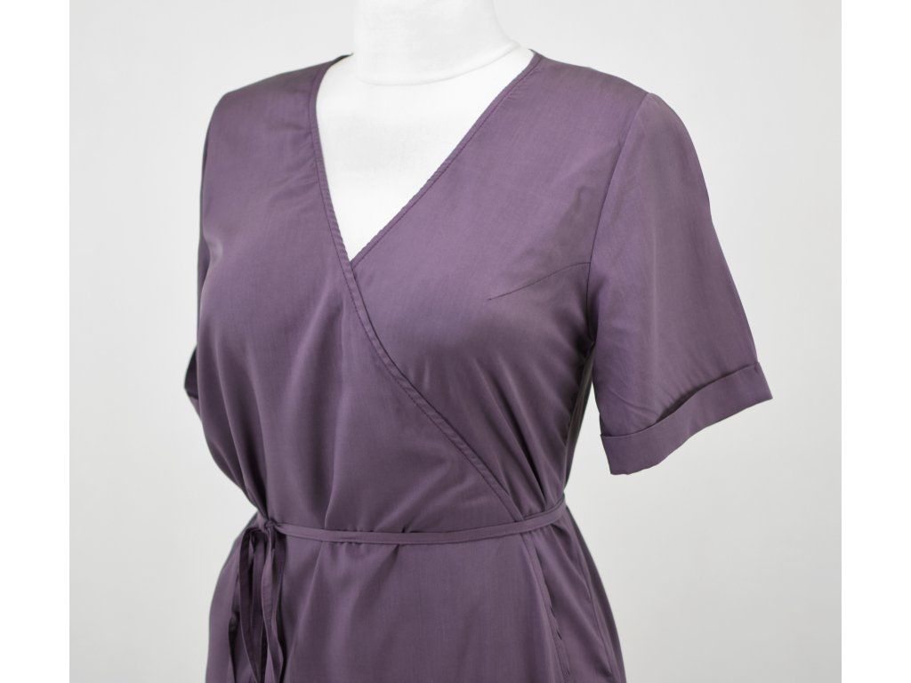 Dámské zavinovací šaty jsou ušity z několika metrů látky, kterou si páskem zavinete kolem těla (na pravém boku je otvor, kterým protáhnete pásek). Mají véčkový výstřih - tak akorát hluboký, zdůrazní pas a přes boky jsou volné. Mají skryté kapsy v bocích... :)