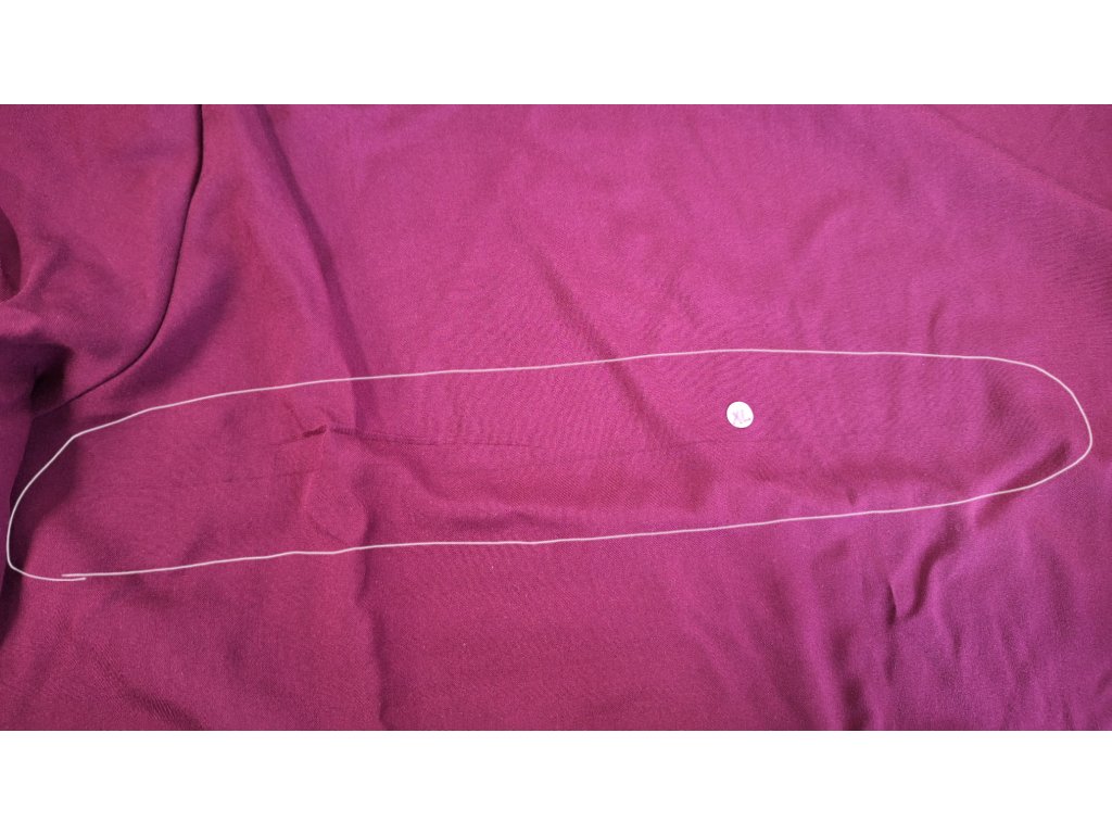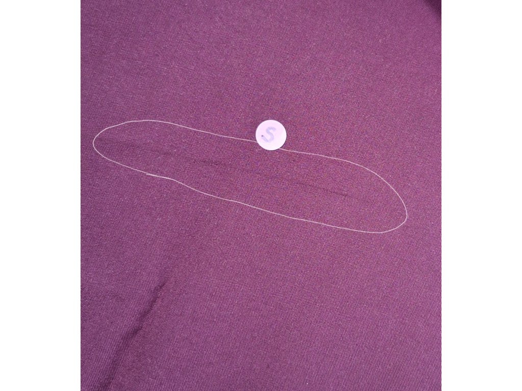 II.JAKOST = čára v látce, vel. S na přední straně pod páskem, vel. XL na zádech