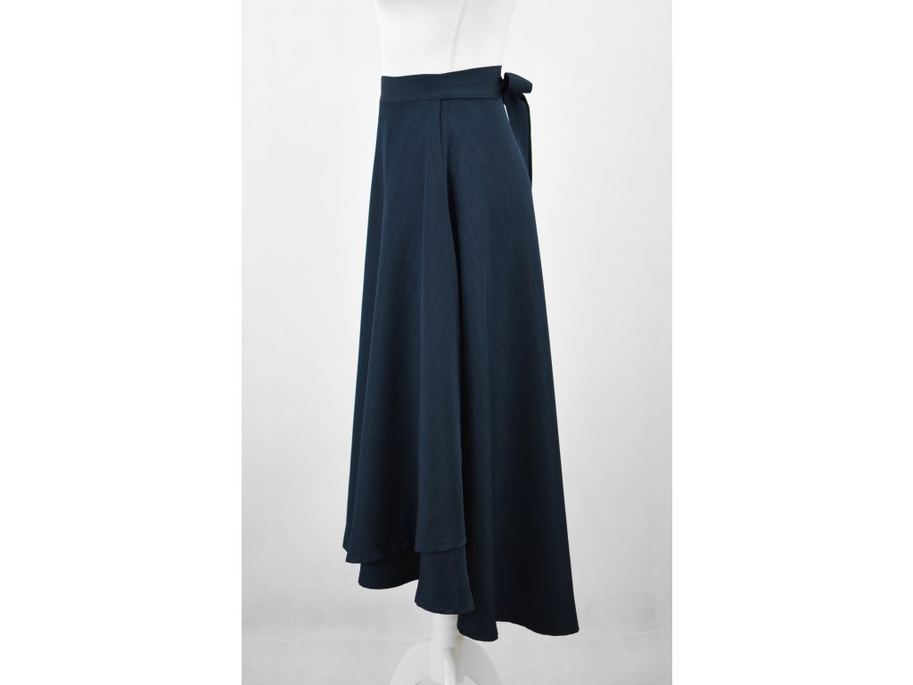 Zavinovací sukně je ušita z několika metrů látky, kterou si páskem zavinete kolem těla (na pravém boku je otvor, kterým protáhnete pásek). Vzadu je delší a vepředu kratší a asymetrická. V bocích má skryté kapsy - ty jsou dobrým ukazatelem, že máte sukni správně posazenou... : )