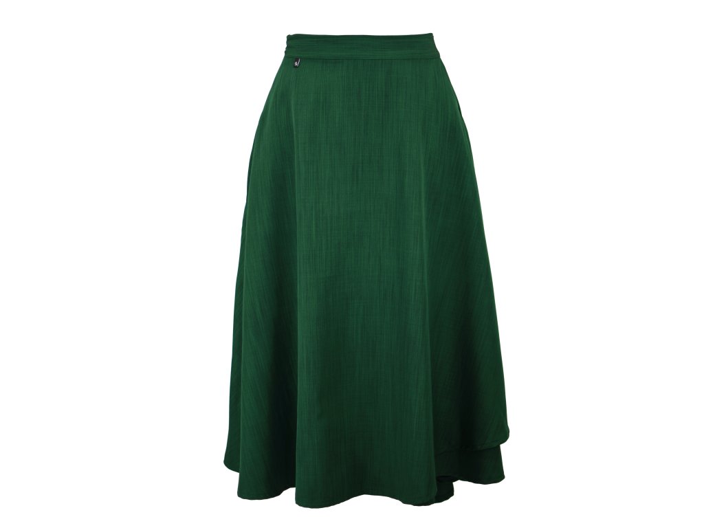Zavinovací sukně je ušita z několika metrů látky, kterou si páskem zavinete kolem těla (na pravém boku je otvor, kterým protáhnete pásek). Vzadu je delší a vepředu kratší a asymetrická. V bocích má skryté kapsy - ty jsou dobrým ukazatelem, že máte sukni správně posazenou... : )